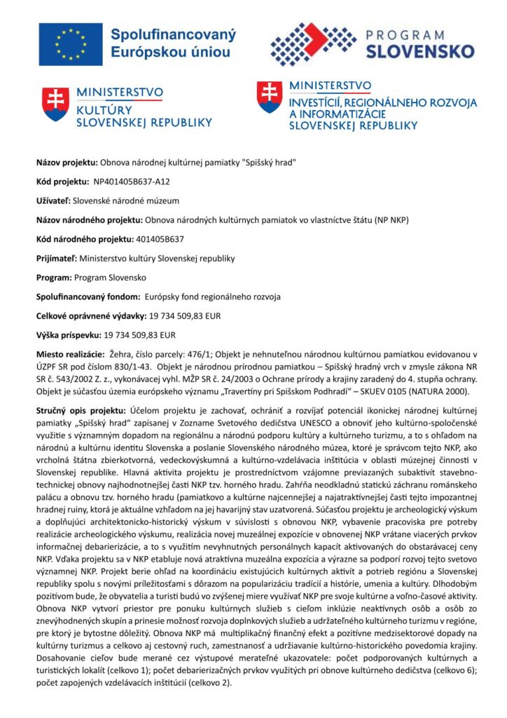 NKP – Spišský hrad /SNM – Spišské múzeum v Levoči